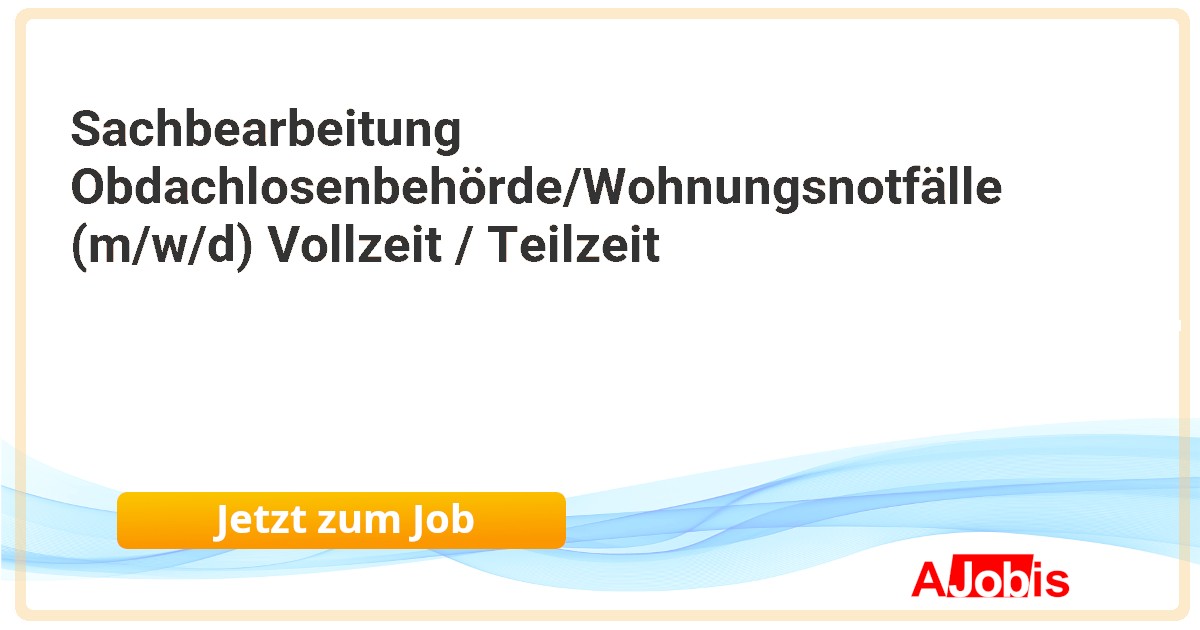 Stadt Hildesheim - Hildesheim [25.11.2025] -- Sachbearbeitung Obdachlosenbehörde/Wohnungsnotfälle (m/w/d) Kurzinfo Arbeitszeit Vollzeit/Teilzeit Anstellungsdauer unbefristet Einstellung zum nächstmöglichen Termin Einsatzort 31134 Hildesheim Bei der Stadt Hildesheim ist im Fachbereich Soziales zum... |