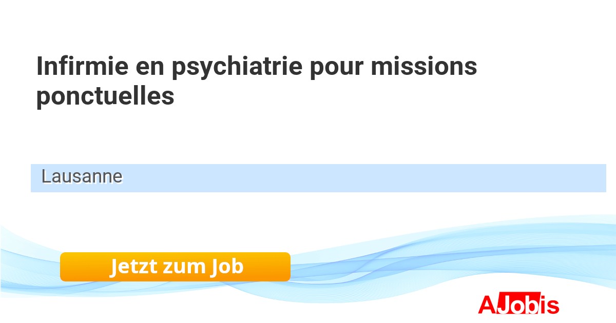 ValJob Delémont - Delémont [24.11.2025] --Afin de compléter nos équipes nous recherchons pour l'une de nos structures hospitalières : INFIRMIER EN PSYCHIATRIE H/F - Autonome dans la prise en charge de chaque patient - Apte à prodiguer des soins adaptés selon les protocoles de... |