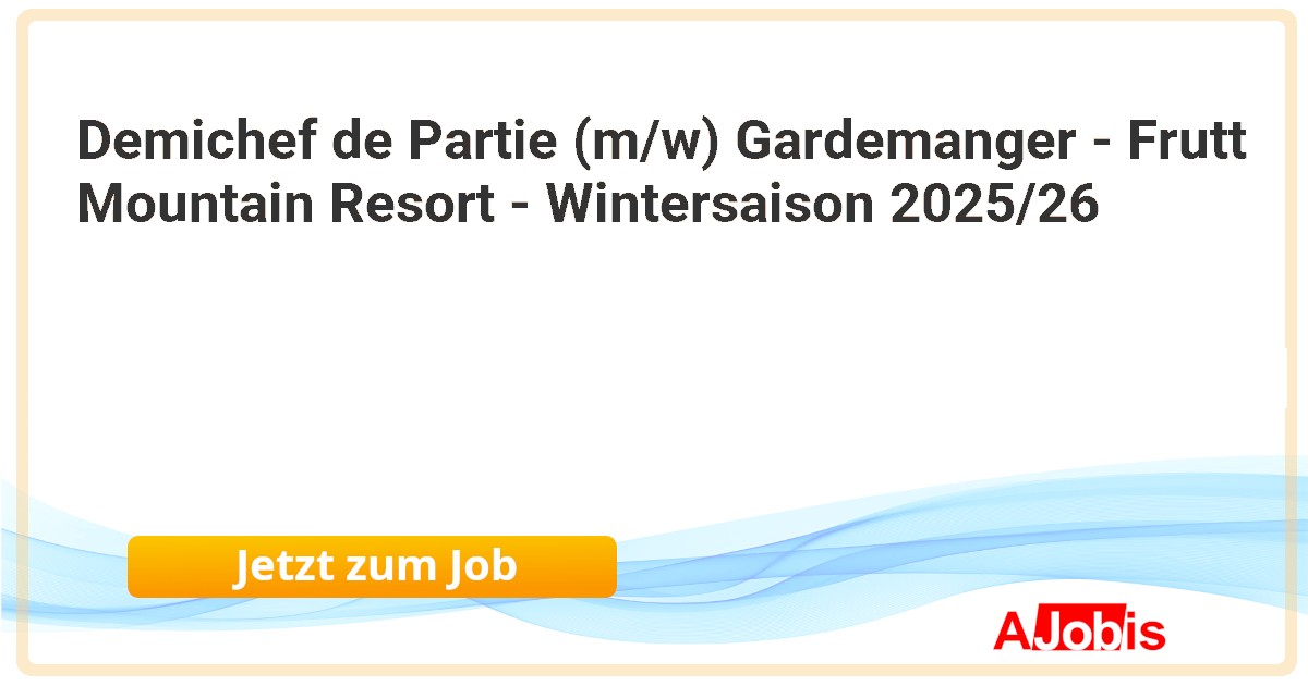 Frutt Mountain Resort - Melchsee-Frutt [24.10.2025] -- Zur Unterstützung unseres Küchenteams im Frutt Mountain Resort suchen wir für die Wintersaison 2025/26, sowie gerne auch weitere Saisons, aufgestellte und motivierte Persönlichkeiten (w/m/d). Anstellungsart: Zeit- / Saisonvertrag In dieser Funktion unterstützt Du... |