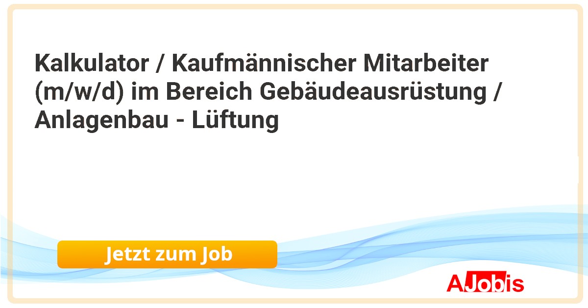 Kalkulator / Kaufmännischer Mitarbeiter (m/w/d) im Bereich Gebäudeausrüstung / Anlagenbau - Lüftung* SSN Gebäudetechnik GmbH - Wolfsburg[05.11.2025] --Die SSN Gebäudetechnik GmbH ist ein junges Unternehmen, das sich auf den Bau von maßgeschneiderten Wärme-, Luft-, Klima- und Kälteanlagen aller Art für den gewerblichen Bedarf spezialisiert hat. Auch Instandsetzungen und Sanierungen gehören zu unserem Portfolio. Zu... |