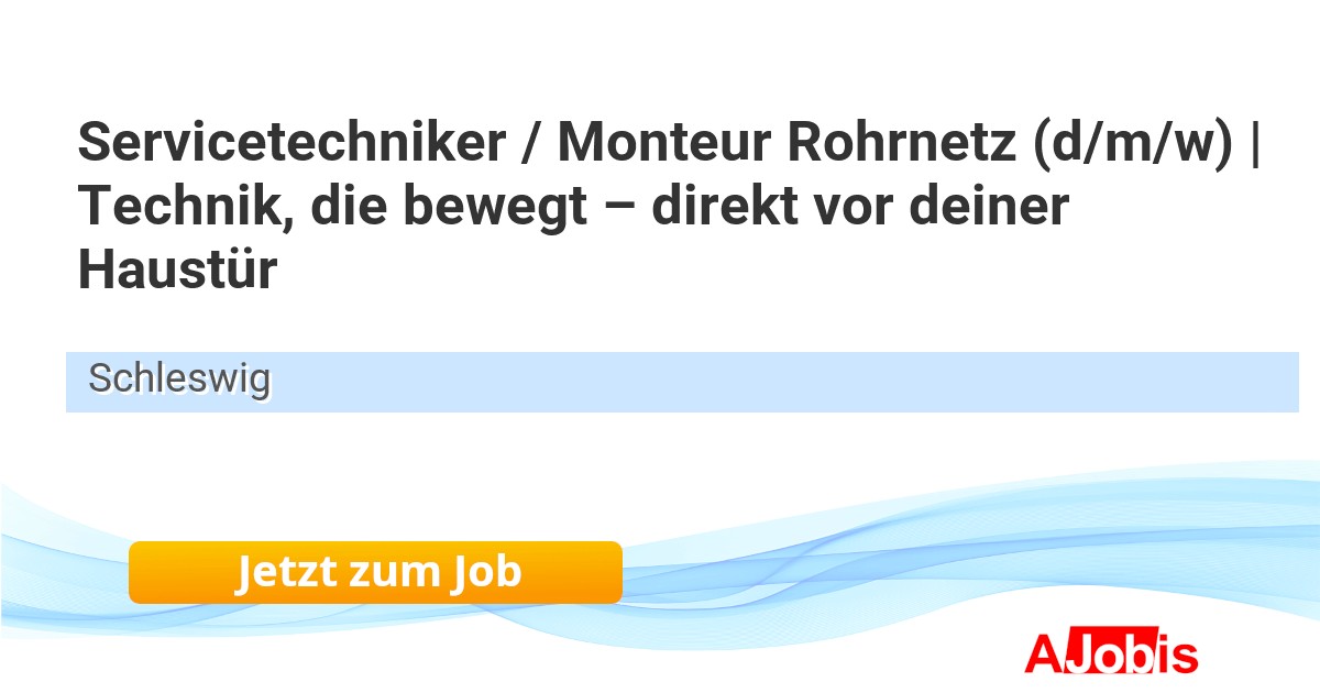 |   |  Stadtwerke SH GmbH & Co. KG - Schleswig [31.10.2025] -- Servicetechniker / Monteur Rohrnetz (d/m/w) | Technik, die verbindet - in deiner Region  Werde Teil unseres Teams – und bring dein handwerkliches Geschick ins Netzteam!   Du arbeitest gerne draußen, packst mit an und willst technische Infrastruktur aktiv mitgestalten? Dann... |