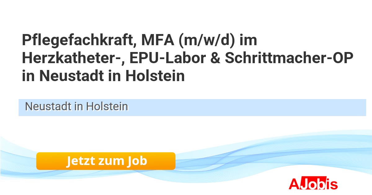 Pflegefachkraft, MFA (m/w/d) im Herzkatheter-, EPU-Labor & Schrittmacher-OP in Neustadt in Holstein* Schön Klinik Gruppe - Neustadt in Holstein[07.11.2025] --Sie möchten Patient:innen in sensiblen Momenten mit Empathie und Herz begleiten? Dann werden Sie Teil unseres spezialisierten Teams im Herzkatheter-, EPU-Labor & Schrittmacher-OP, wo einfühlsame Pflege den Unterschied macht.Die Schön Klinik Neustadt liegt direkt am... |