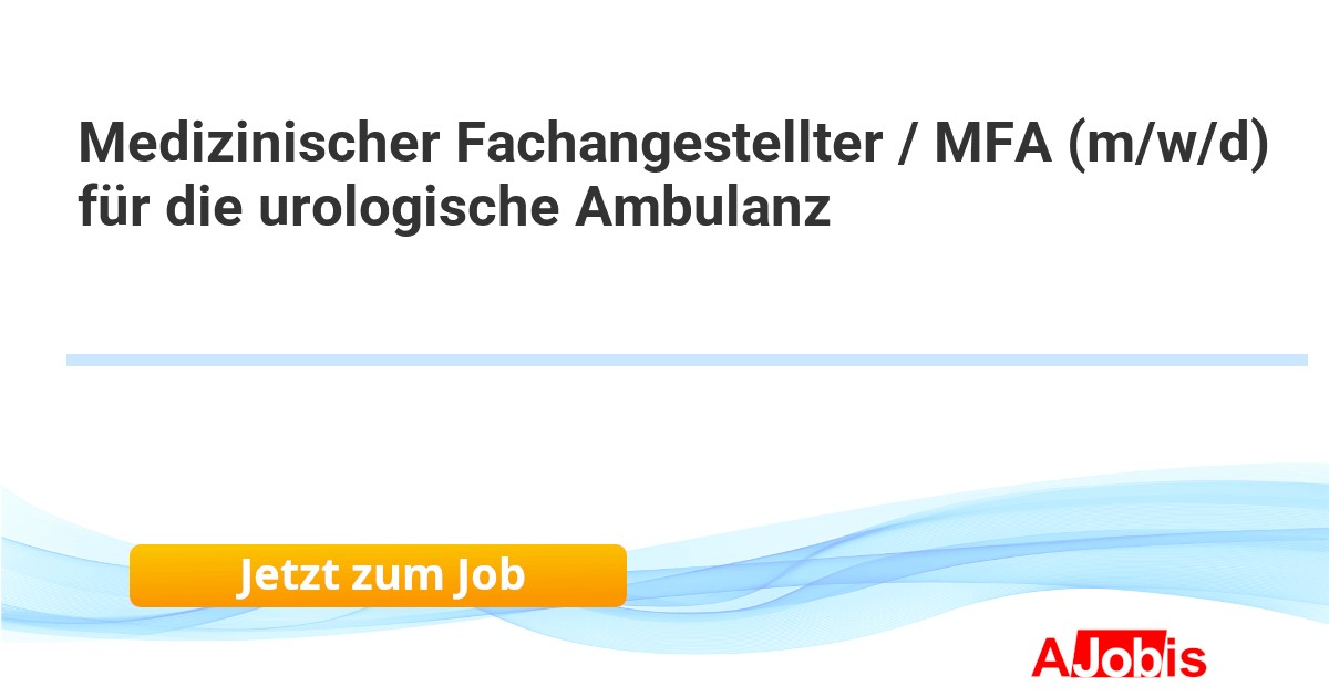 Servicegesellschaft Ammerland-Klinik mbH - Westerstede [28.11.2025] -- Für das Team der Klinik für Urologie und Kinderurologie suchen wir zum nächstmöglichen Zeitpunkt in Voll- oder auch Teilzeit einen Medizinischen Fachangestellten* (MFA) für die urologische Ambulanz * Bei uns zählt der Mensch, nicht das Geschlecht. Ihre Aufgaben bei... |