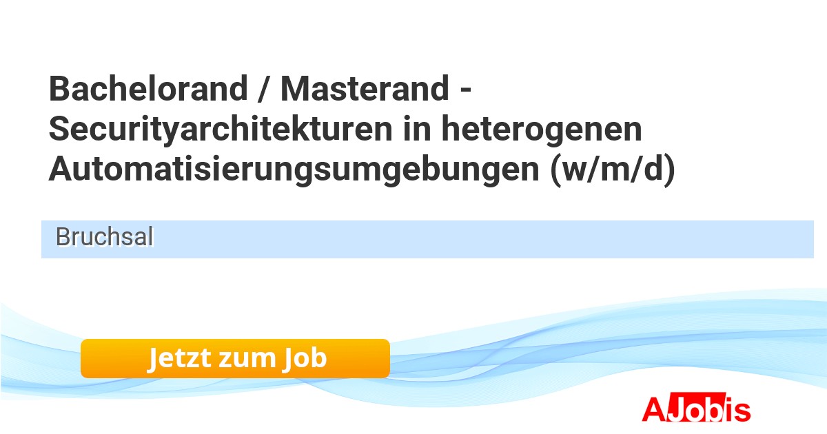 SEW-EURODRIVE GmbH & Co KG - Bruchsal [25.11.2025] --Bachelorand/Masterand - Securityarchitekturen in heterogenen Automatisierungsumgebungen (w/m/d) Bruchsal, Baden-Württemberg, Deutschland (Hybrid) Über uns Als Global Player sorgen wir bei SEW-EURODRIVE für Bewegung mit wegweisenden Technologien und maßgeschneiderten... |