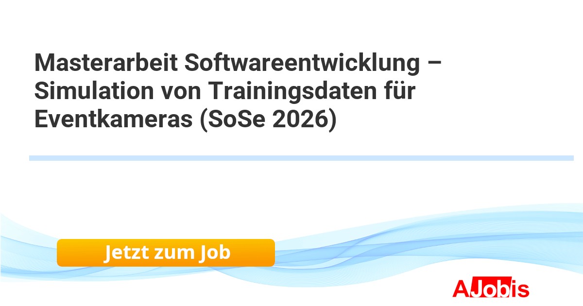 Leuze electronic GmbH + Co. KG - Owen bei Kirchheim unter Teck [30.11.2025] --Masterarbeit Softwareentwicklung – Simulation von Trainingsdaten für Eventkameras (SoSe 2026) Thema: Simulation von Trainingsdaten für Eventkameras Bereich: Research & Development Standort: Owen bei Kirchheim / Teck Beschäftigungsart: Abschlussarbeit Wer sind die Sensor... |