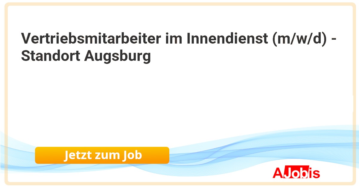 Robert Schiessl GmbH - Augsburg [04.11.2025] -- Vertriebsmitarbeiter im Innendienst (m/w/d) - Standort Augsburg Sie möchten Ihren nächsten Schritt in Ihrer Karriere machen - Dann sind Sie bei uns richtig! Auf Sie wartet ein starkes Team. Als führender Großhändler mit über 50 Verkaufshäusern europaweit sind wir... |