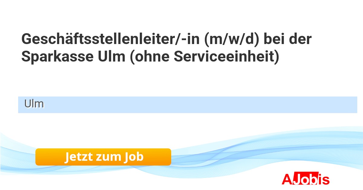 Sparkasse Ulm - Ulm [24.11.2025] -- Machen Sie mit uns das Beste wahr Seit über 175 Jahren sind wir, die Sparkasse Ulm, ein verlässliches Kreditinstitut in der Region, das auf Tradition, Innovation und vor allem auf unsere Mitarbeiter/-innen setzt. Unser Ziel ist es, den Wohlstand in der Region zu fördern.... |