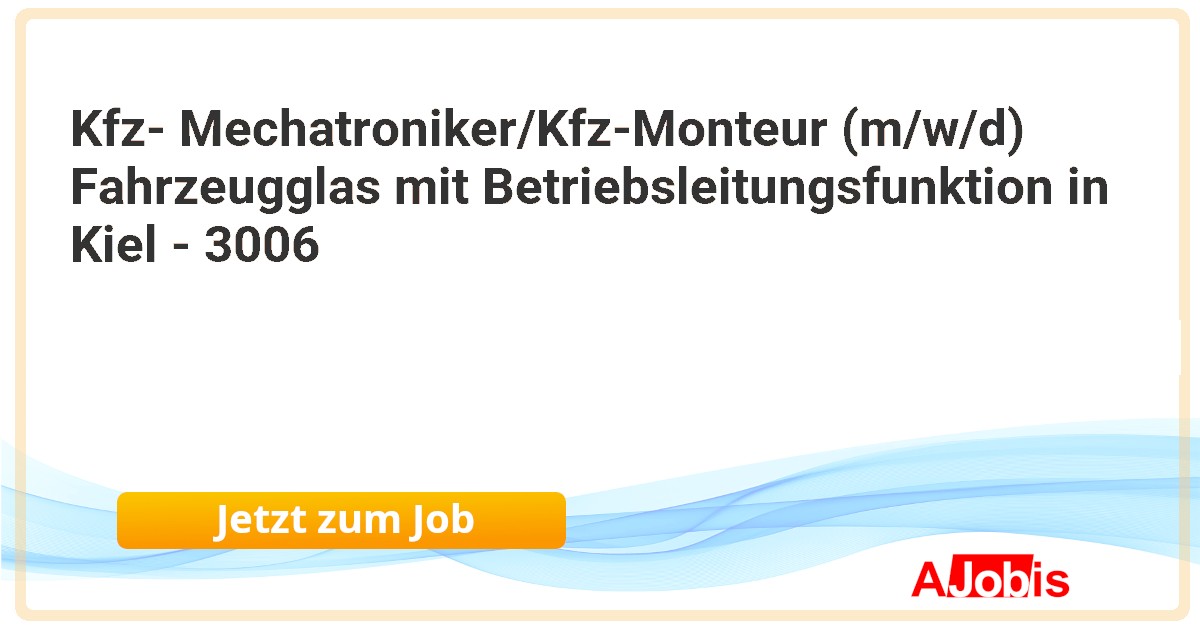 Carglass GmbH - Kiel [07.11.2025] --Wir sind mit mehr als 2.600 Expert*innen führend für die Reparatur und den Austausch von Fahrzeugscheiben in Deutschland. Mit über 370 Service-Centern und 240 mobilen Einheiten stehen wir für Sicherheit, Verlässlichkeit und höchste Qualitätsansprüche. Wir machen den... |