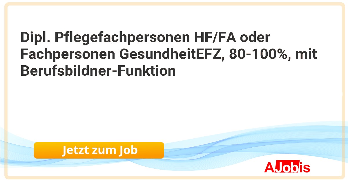 Dipl. Pflegefachpersonen HF/FA oder Fachpersonen GesundheitEFZ, 80-100%, mit Berufsbildner-Funktion* Alters- und Pflegezentrum Herrenbergli Genossenschaft - Zürich[24.11.2025] --Das Alters- und Pflegezentrum Herrenbergli , als