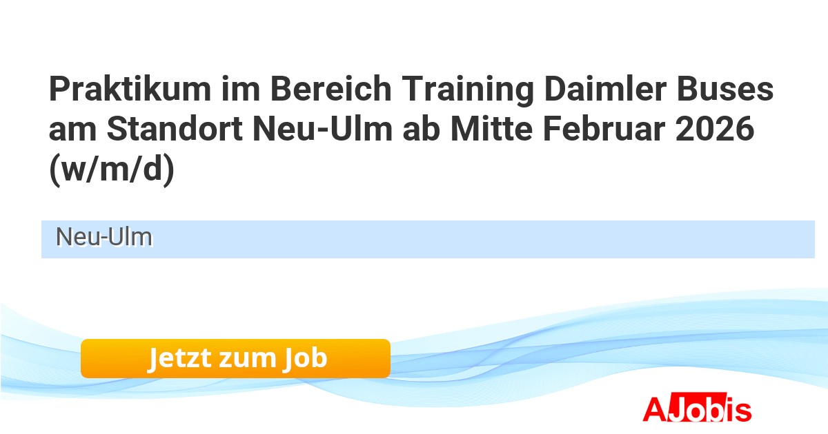 Daimler Buses GmbH - Neu-Ulm [26.11.2025] --Bei Daimler Truck wollen wir das heutige Transportwesen verändern, um gemeinsam etwas zu bewirken. Darum übernehmen wir weltweit Verantwortung und arbeiten als ein globales Team gemeinsam an unserer Vision: Leading Sustainable Transportation. Es sind die Menschen, die bei uns... |