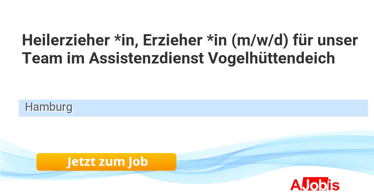Evangelische Stiftung Alsterdorf - alsterdorf assistenz west gGmbH - Hamburg [31.10.2025] --Heilerzieher *in, Erzieher *in (m/w/d) für unser Wohn- und Assistenzangebot in Osdorf Über unsalsterdorf assistenz west – das sind rund 1000 Mitarbeiter *innen an 73 Standorten. Gemeinsam stehen wir für Empowerment und Inklusion von Menschen mit Behinderung in Hamburg.... |