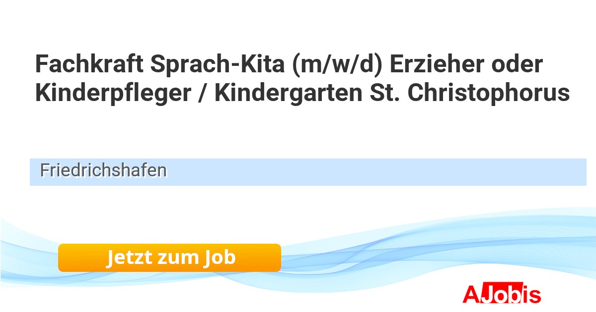 Katholische Gesamtkirchengemeinde Friedrichshafen - Friedrichshafen [06.11.2025] -- Die Katholische Gesamtkirchengemeinde Friedrichshafen ist Trägerin von 16 Kindergärten. Unser dreigruppiger Kindergarten St. Christophorus liegt im Friedrichshafener Teilort Fischbach ganz in der Nähe des wunderschönen Bodenseeufers. Wir suchen zum nächstmöglichen... |