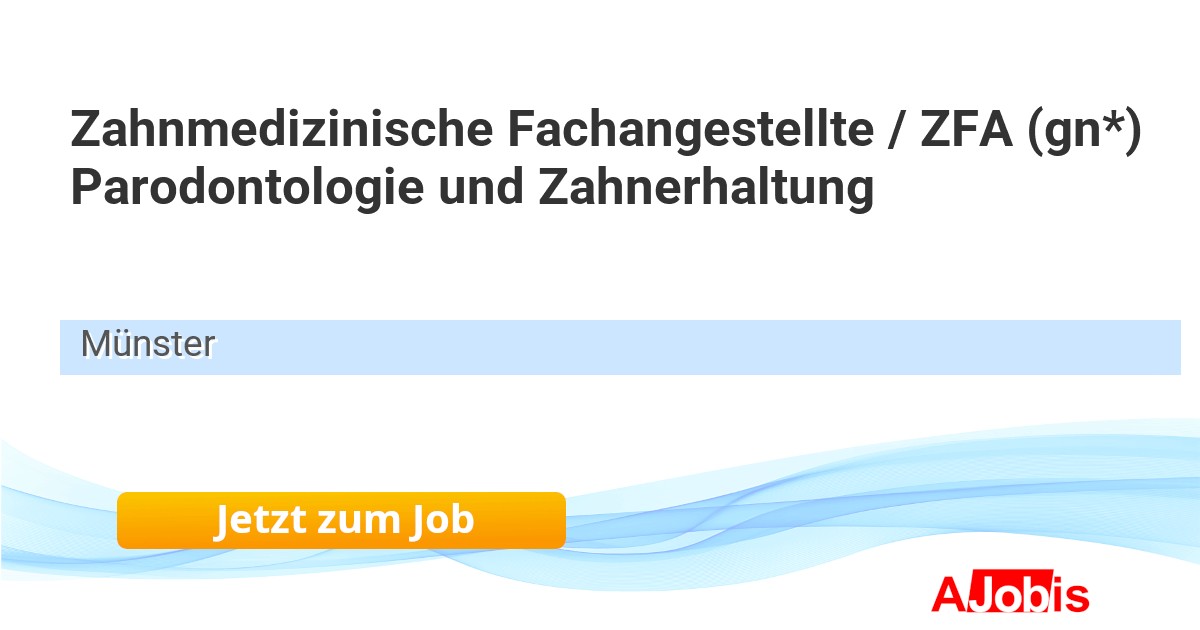 Universitätsklinikum Münster - Münster [26.11.2025] -- Zahnmedizinische Fachangestellte / ZFA (gn*) Parodontologie und Zahnerhaltung Unbefristet | In Vollzeit mit 38,5 Wochenstunde | Poliklinik für Parodontologie und Zahnerhaltung | Kennziffer 10905 Wir sind das UKM. Wir haben einen klaren gesellschaftlichen Auftrag und mit... |