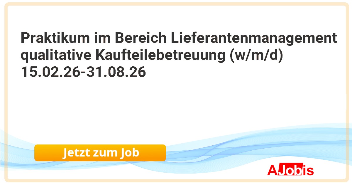 AUMOVIO Germany GmbH - Regensburg [28.11.2025] --Hey, du bist auf der Suche nach einem spannenden Praktikum, bei dem du wertvolle Einblicke in die Welt der betrieblichen Ausbildung gewinnen kannst? Dann haben wir genau das Richtige für dich!... |