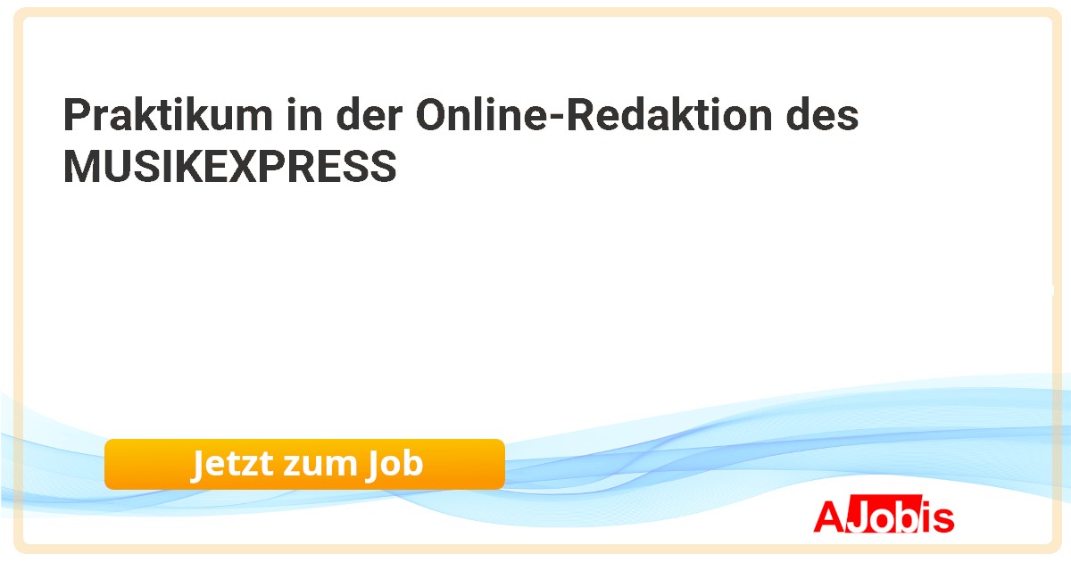 Mediahouse Berlin GmbH - Berlin [27.11.2025] --Wir suchen für 3 Monate Praktikanten (m/w/d) für die Online-Redaktion des Musikexpress. Musik und Lifestyle, Entertainment und Zeitgeschehen: Mit Kreativität und hohem journalistischem Anspruch verlegen wir unsere Titel ROLLING STONE, MUSIKEXPRESS und METAL HAMMER. Gemeinsam... |