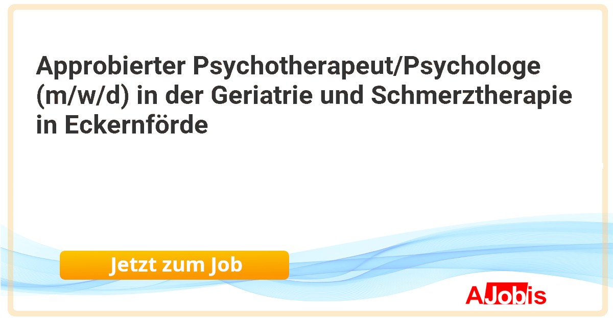 Approbierter Psychotherapeut/Psychologe (m/w/d) in der Geriatrie und Schmerztherapie in Eckernförde* Schön Klinik Gruppe - Eckernförde[09.11.2025] --Sie möchten Ihre psychologische Expertise in der Geriatrie und Schmerztherapie einbringen und dabei mit einem engagierten Team zusammenarbeiten? Bei uns finden Sie ein modernes Arbeitsumfeld, in dem Wertschätzung, interdisziplinäre Zusammenarbeit und fachliche... |