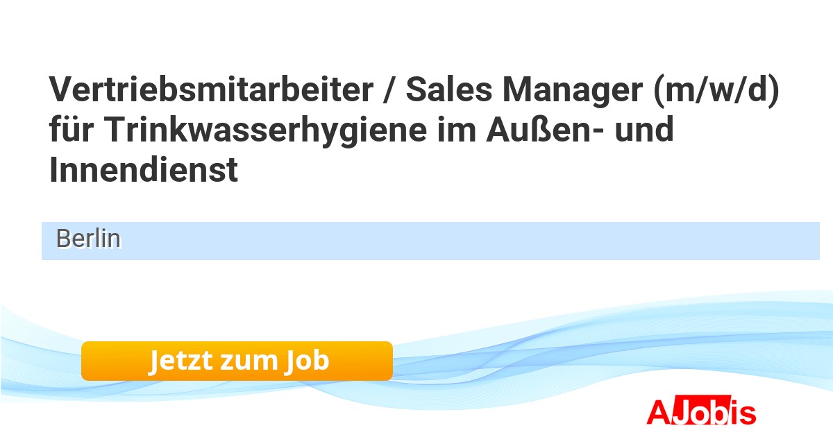 aluta Wärmetechnik GmbH - Berlin [24.11.2025] -- Bestandskundenpflege und Neukunden-Akquise im Bereich Trinkwasserhygiene Eigenverantwortliche Durchführung von Verkaufsgesprächen, inklusive Vor- und Nachbereitung Kalkulation und Erstellung von individuellen Angeboten sowie deren Nachverfolgung und Erfolgskontrolle... |
