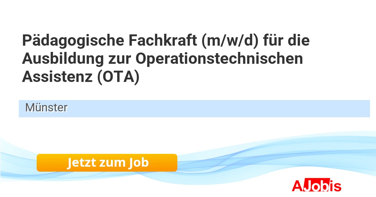 Franziskus Gesundheitsakademie Münster der St. Franziskus-Hospital GmbH Münster - Münster [26.11.2025] --Pädagogischer Mitarbeiter Operationstechnische Assistenz (m/w/d) Münster, Nordrhein-Westfalen Wir stellen uns vor Das St. Franziskus-Hospital Münster ist eine Einrichtung der St. Franziskus Stiftung Münster und akademisches Lehrkrankenhaus der Universität Münster. Als... |