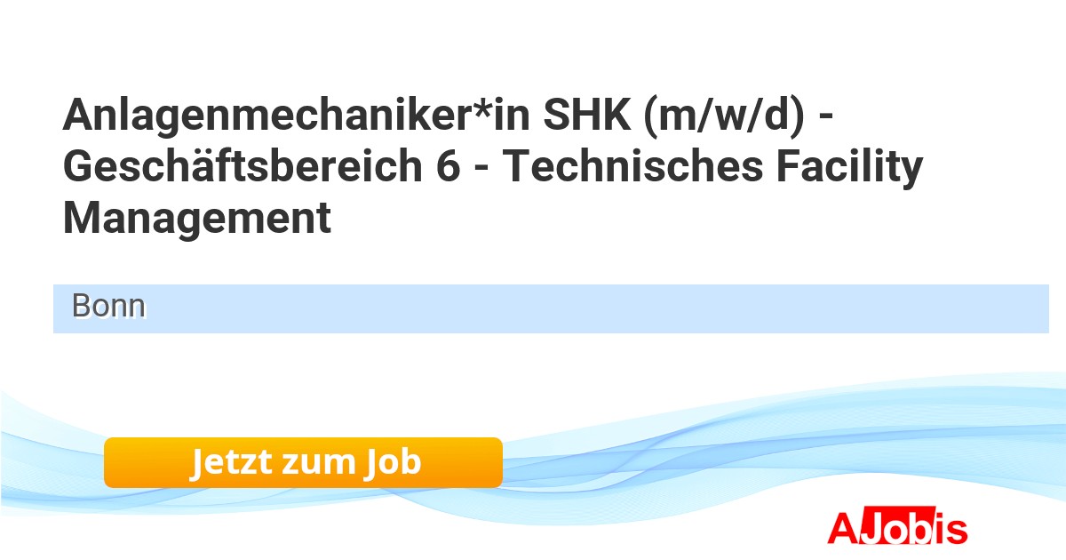Universitätsklinikum Bonn - Bonn [22.10.2025] -- Durchführen von Inspektions- und Wartungsarbeiten an Sanitär- und Trinkwasserleitungen Kontrolle der Abwasserleitungen und Hebeanlangen Kontrolle und Reparatur aller SHK-Arbeiten am Klinikum Kontrolle und Wartung der Druckerhöhungsanlagen Sachgebietsübergreifendes... |