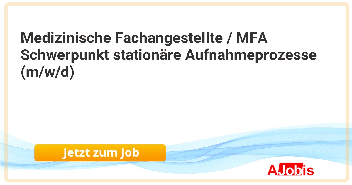 Helios Klinikum Hildesheim GmbH - Hildesheim [14.11.2025] -- Fangen Sie mit uns was Neues an! Für unser Pflege-Team im Helios Klinikum Hildesheim suchen wir zum nächstmöglichen Zeitpunkt Sie als Medizinische Fachangestellte / MFA (m/w/d) mit Schwerpunkt stationäre Aufnahmeprozesse Stellennummer 1111_000147 Das erwartet Sie... |