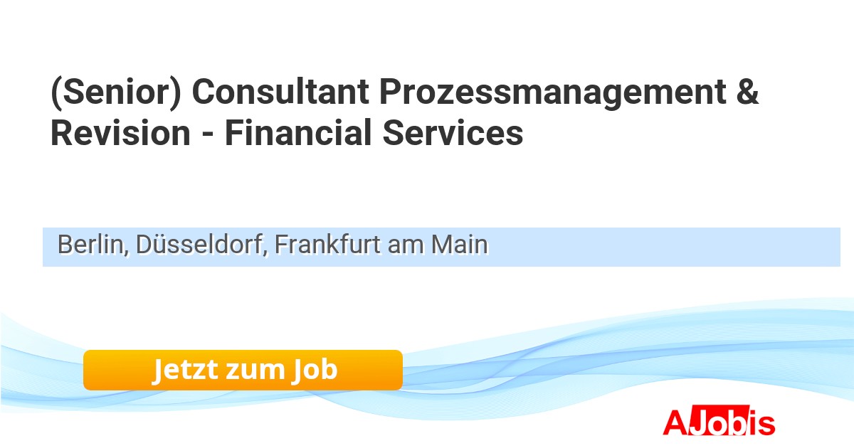 KPMG AG Wirtschaftsprüfungsgesellschaft - Berlin, Düsseldorf, Frankfurt am Main, Hamburg, München, Mannheim [06.11.2025] --In Deiner Rolle als (Senior) Consultant Prozessmanagement & Revision – Financial Services erwartet Dich ein vielseitiges Aufgabenspektrum. Du wirst interne Revisionen von Finanzinstituten beraten und bei ihren Prüfungen unterstützen. Alternativ unterstützt Du unser Team... |