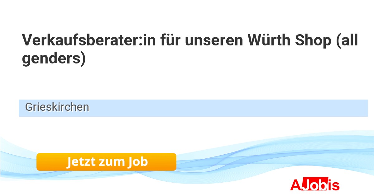 Würth Handelsges.m.b.H. - Grieskirchen [07.11.2025] --Würth ist führender Hersteller von Befestigungstechnik für die professionelle Anwendung. Hinter dem langjährigen Erfolg der Würth-Gruppe stecken Menschen und eine ganz besondere Firmenphilosophie: Wir Würthler:innen sind echte Macher:innen mit Handschlagqualität... |
