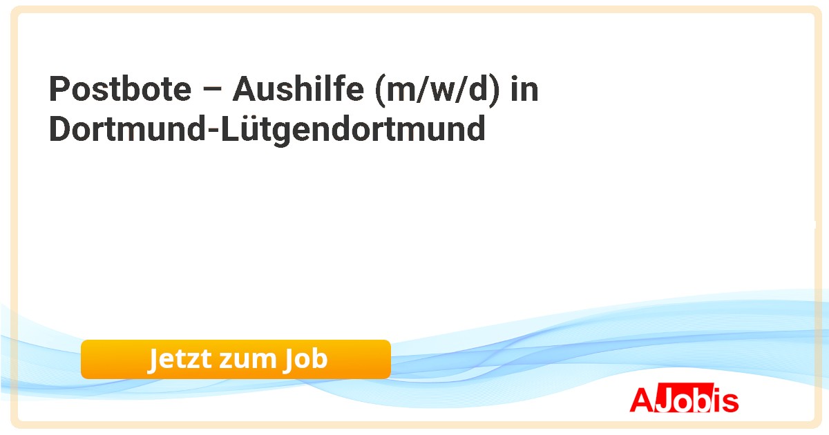Deutsche Post AG - Wachtberg [03.11.2025] -- Postbote für Pakete und Briefe in Wachtberg – Minijob / Aushilfe (m/w/d) AV-293454 Wachtberg, Nordrhein-Westfalen, Germany Teilzeit Saisonal 16.7 Post & Paket Yes Deutsche Post AG Werde Aushilfe / Minijobber als Postbote für Pakete und Briefe in Wachtberg Als... |