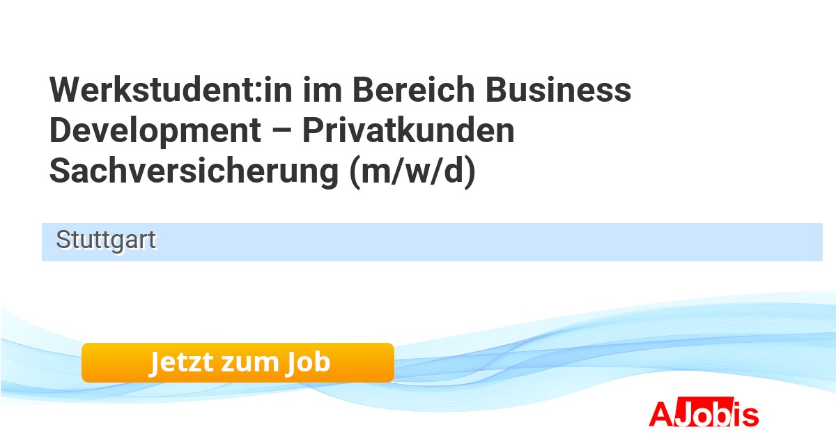 SV SparkassenVersicherung - Stuttgart [05.11.2025] -- Werkstudent:in im Bereich Business Development – Privatkunden Sachversicherung (m/w/d)für unseren Standort in Stuttgart Unser Konzern mit rund 5.000 Menschen und mehreren Standorten ist Teil der Sparkassen-Finanzgruppe und bietet alle Arten von... |