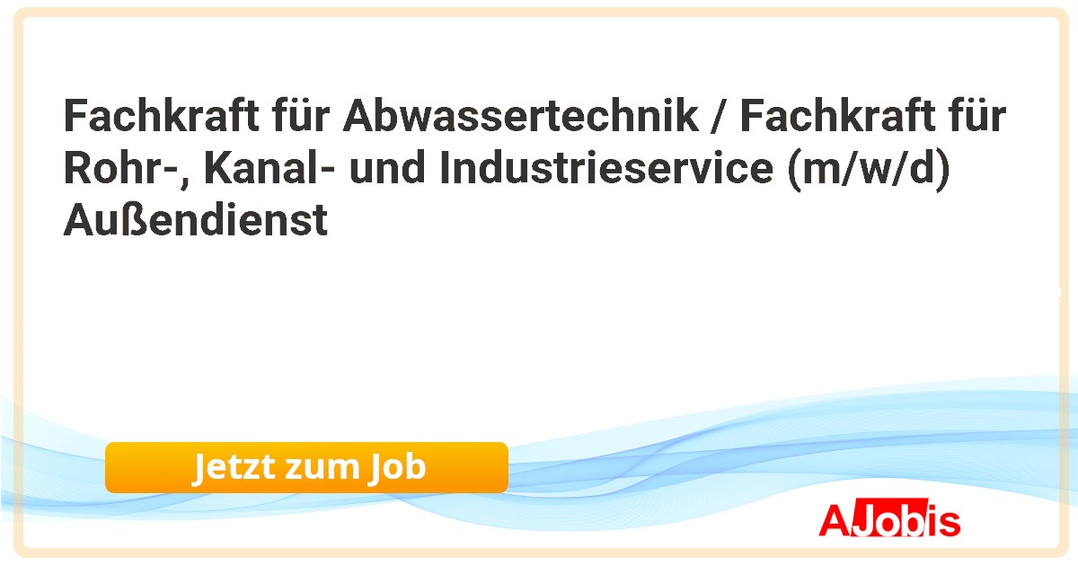 Zweckverband Gruppenklärwerk Wendlingen am Neckar - Wendlingen am Neckar [23.11.2025] -- Fachkraft für Abwassertechnik / Fachkraft für Rohr-, Kanal- und Industrieservice (m/w/d) Außendienst Fachkraft für Abwassertechnik (m/w/d) / Fachkraft für Rohr-, Kanal- und Industrieservice (m/w/d) Außendienst für den Bereich dezentrale Anlagen Außendienst/... |