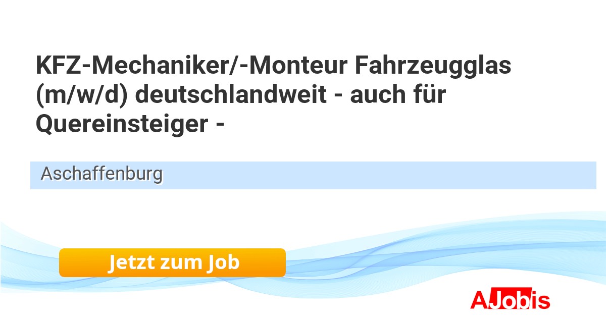 Carglass GmbH - Aschaffenburg [07.11.2025] --Als KFZ-Mechaniker/-Monteur Fahrzeugglas (m/w/d)arbeitest du in Voll- oder Teilzeit in einem der 370 Service-Center in der Nähe deines Wohnorts. Auch Quereinsteiger sind bei uns willkommen. Carglass® repariert – Carglass® tauscht aus. ... |