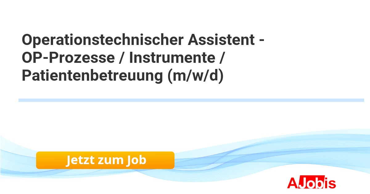 Evangelisches Krankenhaus Oberhausen GmbH - Oberhausen [06.11.2025] -- Vorbereitung und Betreuung der Patientinnen und Patienten vor, während und nach dem Eingriff Vorbereitung des OP-Bereiches (z. B. Instrumente bereitstellen) Assistenz während der Operation Dokumentation und Verwaltung von Materialien und deren... |