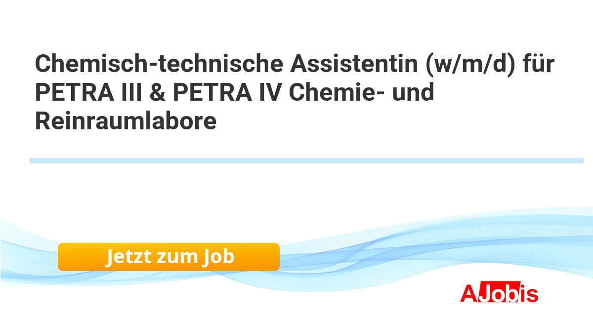 Deutsches Elektronen-Synchrotron DESY - Hamburg [27.11.2025] --Für den Standort Hamburg suchen wir: Chemischtechnische Assistentin (w/m/d) für PETRA III & PETRA IV Chemie- und Reinraumlabore Befristet: 2 Jahre | Start: frühestmöglich | ID: FSMA036/2025 | Bewerbungsschluss: 15.01.2026 | Vollzeit / Teilzeit Das Deutsche... |