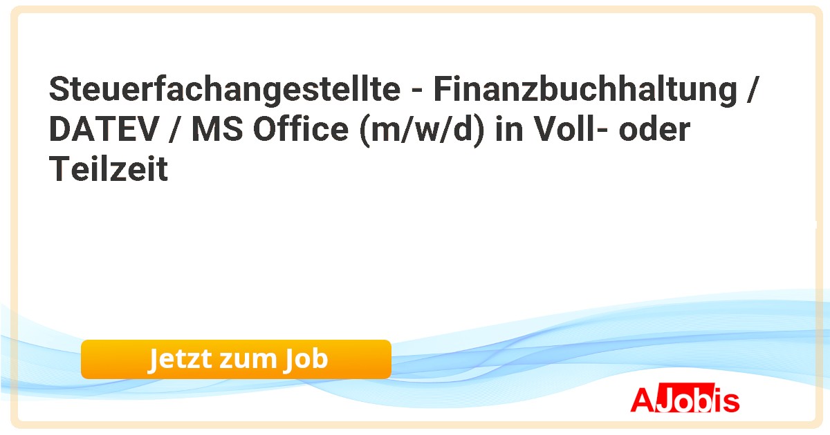 Monika Zeuch - Steuerberaterin - Kassel [11.11.2025] -- 34128 Kassel Feste Anstellung Vollzeit Steuerfachangestellte (m/w/d) gesucht Zur Verstärkung meines Teams suche ich einen motivierten Mitarbeiter (m/w/d). Ihre Aufgaben: Erstellung von Finanz- und Lohnbuchhaltungen, ESt-Erklärungen Selbständige Betreuung... |