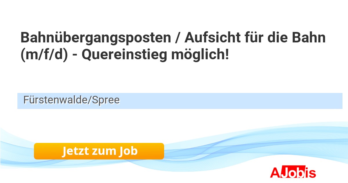 HWS-Wallow, Wach-und Sicherungsdienst GmbH - Fürstenwalde/Spree [10.11.2025] -- Bahnübergangsposten / Aufsicht für die Bahn (m/f/d) - Quereinstieg möglich! HWS-Wallow GmbH – Seit über 30 Jahren Partner der Deutschen Bahn AG Treysa, Fürstenwalde Vollzeit Unbefristet Standorte: Fürstenwalde (Einsatzgebiet Brandenburg & Berlin) oder Treysa... |