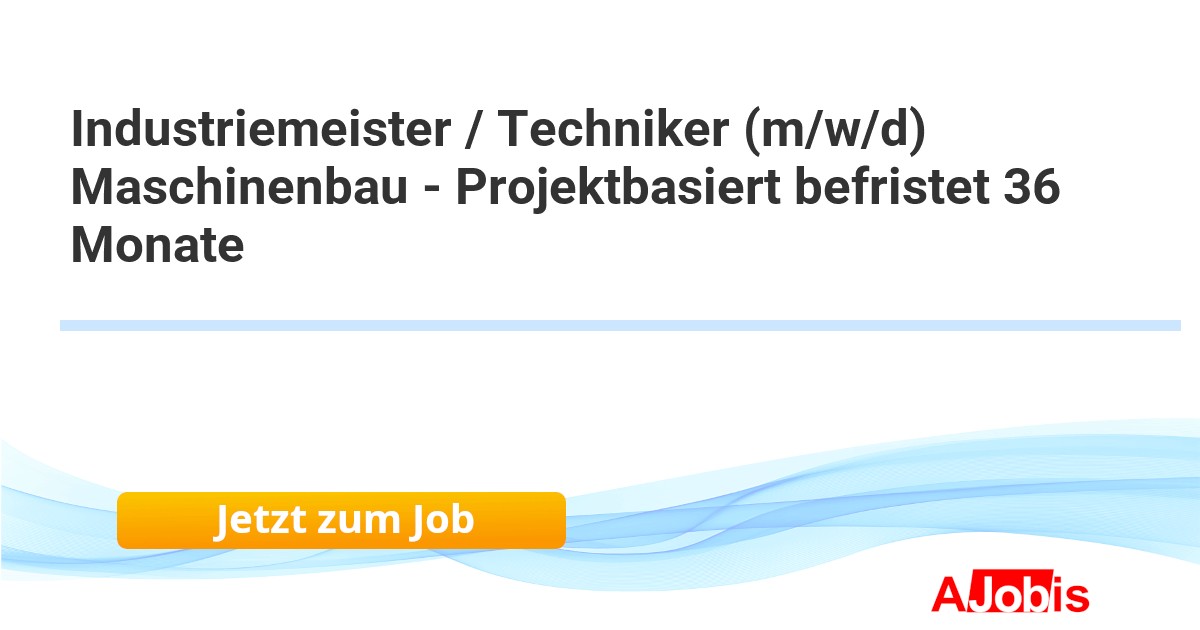 Körber Pharma Inspection GmbH - Alzey [22.11.2025] -- Industriemeister / Techniker (m/w/d) Maschinenbau – Projektbasiert befristet 36 Monate Unternehmen: Körber Pharma Inspection GmbH Standort: Alzey, Rheinland-Pfalz, Markt Schwaben bei München Job ID: 8783 Diese auf vorerst auf 36 Monate befristete Position bietet Ihnen... |