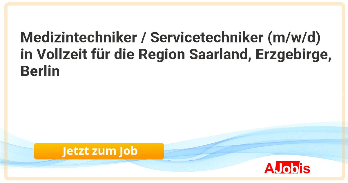 Medizintechniker / Servicetechniker (m/w/d) in Vollzeit für die Region Saarland, Erzgebirge, Berlin* HERMED Technische Beratungs GmbH - Berlin[14.11.2025] -- Wir leben Medizintechnik-Bewirtschaftung! Medizintechniker / Servicetechniker (m/w/d) in Vollzeit für die Region Saarland, Erzgebirge, Berlin HIERFÜR SUCHEN WIR SIE! Wir sind ein europaweit führendes Dienstleistungsunternehmen im Bereich der Medizintechnik und sorgen als... |