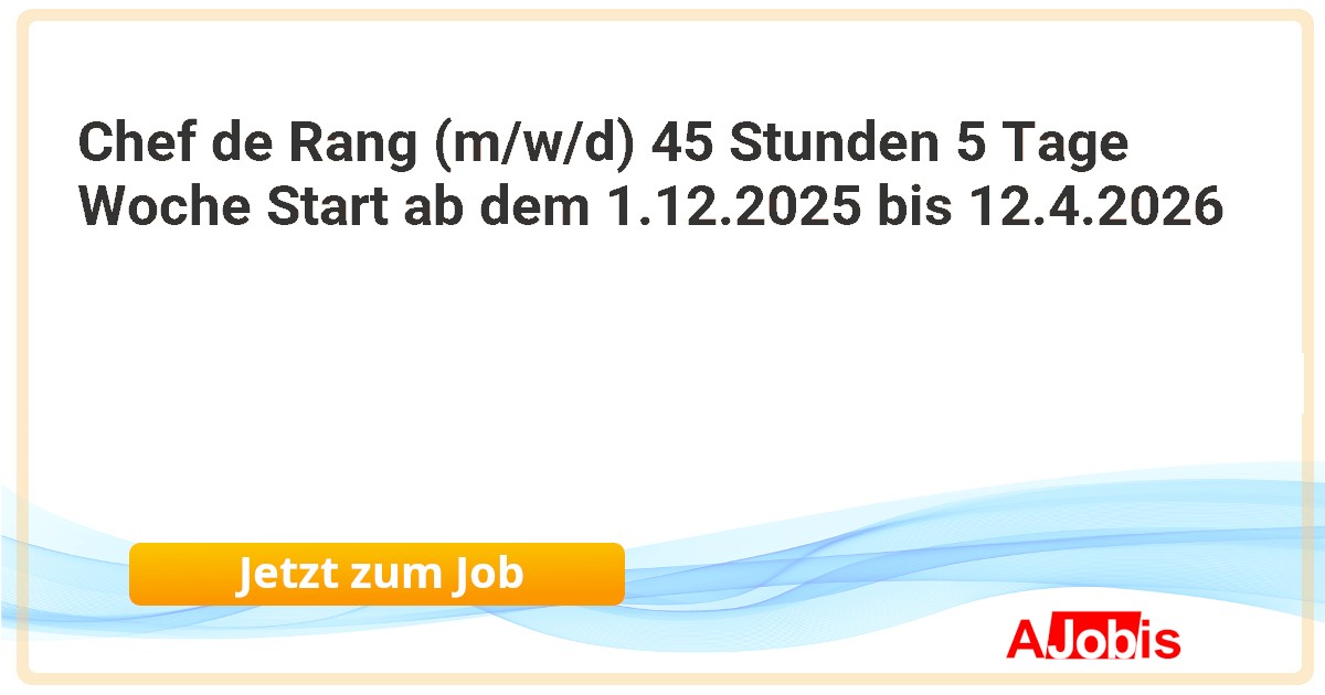 Koch (m/w) direkt ab Lehre oder mit Berufserfahrung 1 bis 4 Jahre per sofort oder nach Vereinbarung* Gasthof Kreuz - Wohlen bei Bern[30.10.2025] -- Landgasthof zum Kreuz in 3033 Wohlen bei Bern Anstellungsart: Vollzeit markterechte, frische Küche mit neuzeitlicher Küchenpraxis einhaltung der Küchenrichtlinien im Sommer Gartenrestaurant Giardino Sie sind: Gastroprofi, kreativ, flexibel, belastbar und teamfähig... |