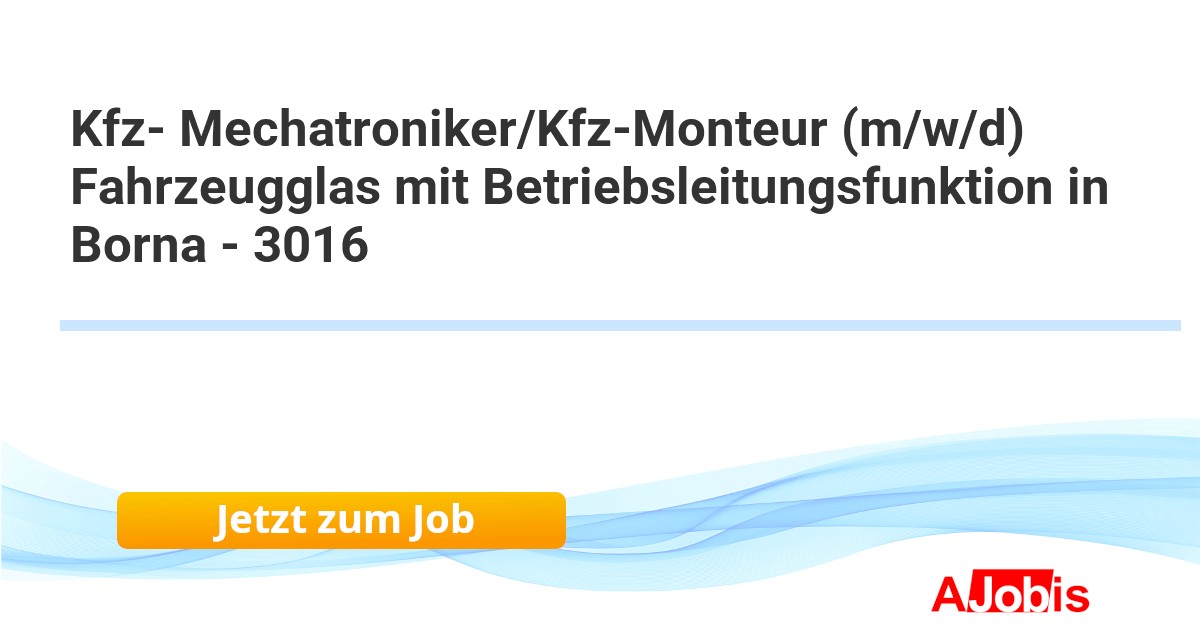 Carglass GmbH - Borna [26.11.2025] --Wir sind mit mehr als 2.600 Expert*innen führend für die Reparatur und den Austausch von Fahrzeugscheiben in Deutschland. Mit über 370 Service-Centern und 240 mobilen Einheiten stehen wir für Sicherheit, Verlässlichkeit und höchste Qualitätsansprüche. Wir machen den... |