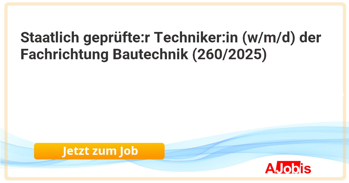 Wasserstraßen- und Schifffahrtsamt Weser-Jade-Nordsee - Bremen [21.11.2025] --Zu Ihren Aufgaben gehören die Inspektion und die Unterhaltung von Bauwerken (Wehranlagen, Schleusen, Brücken, feste Schifffahrtszeichen und weitere Wasserbauwerke) an und auf den Bundeswasserstraßen Weser, Hunte und Küstenkanal. Zu den überwiegend selbstständig... |