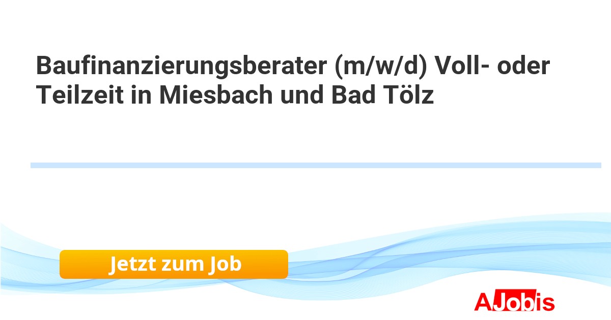 Raiffeisenbank im Oberland eG - Bad Tölz [10.11.2025] -- Raiffeisenbank im Oberland eG Albert-Schäffenacker-Str. 5 83646 Bad Tölz Ihr Ansprechpartner Julia Carling Personalrecruiting 08041 7931-1801 Email senden Stellenbeschreibung Raiffeisenbank im Oberland eG Baufinanzierungsberater (m/w/d) Voll- oder... |