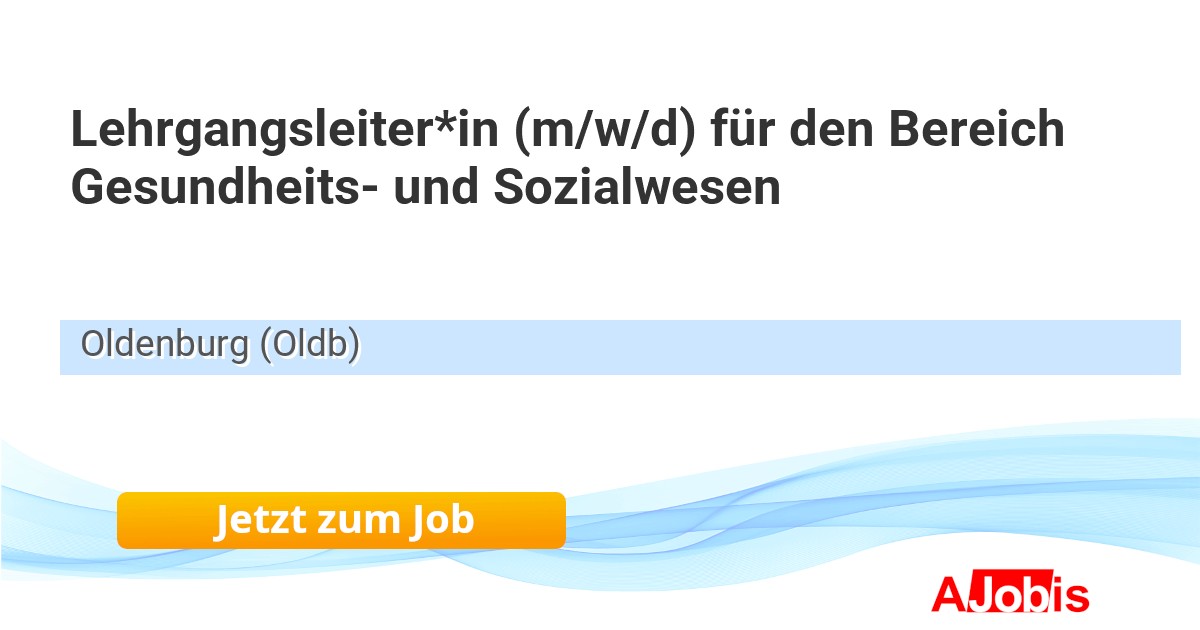 ComFair GmbH - Oldenburg (Oldb) [12.11.2025] --Für unseren Standort in Oldenburg suchen wir eine*n Lehrgangsleiter*in (m/w/d) für den Bereich Gesundheits- und Sozialwesenin Vollzeit (Teilzeit möglich) ComFair GmbH ist ein anerkannter Bildungsträger in der Erwachsenenbildung mit Fokus auf berufliche Neuorientierung... |