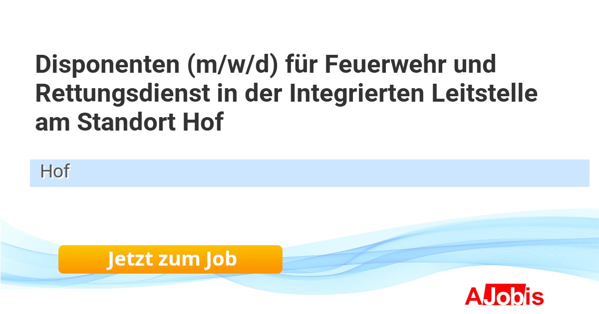 Disponenten (m/w/d) für Feuerwehr und Rettungsdienst in der Integrierten Leitstelle am Standort Hof* Bayerisches Rotes Kreuz K.d.ö.R. Landesgeschäftsstelle - Hof[07.11.2025] --Disponenten*innen in der Integrierten Leitstelle sind für die Entgegennahme von Notrufen, die eigenständige Disposition und Alarmierung von Einsatzmitteln und Einheiten der Feuerwehren, des Rettungsdienstes und des Katastrophenschutzes im Leitstellenbereich zuständig.