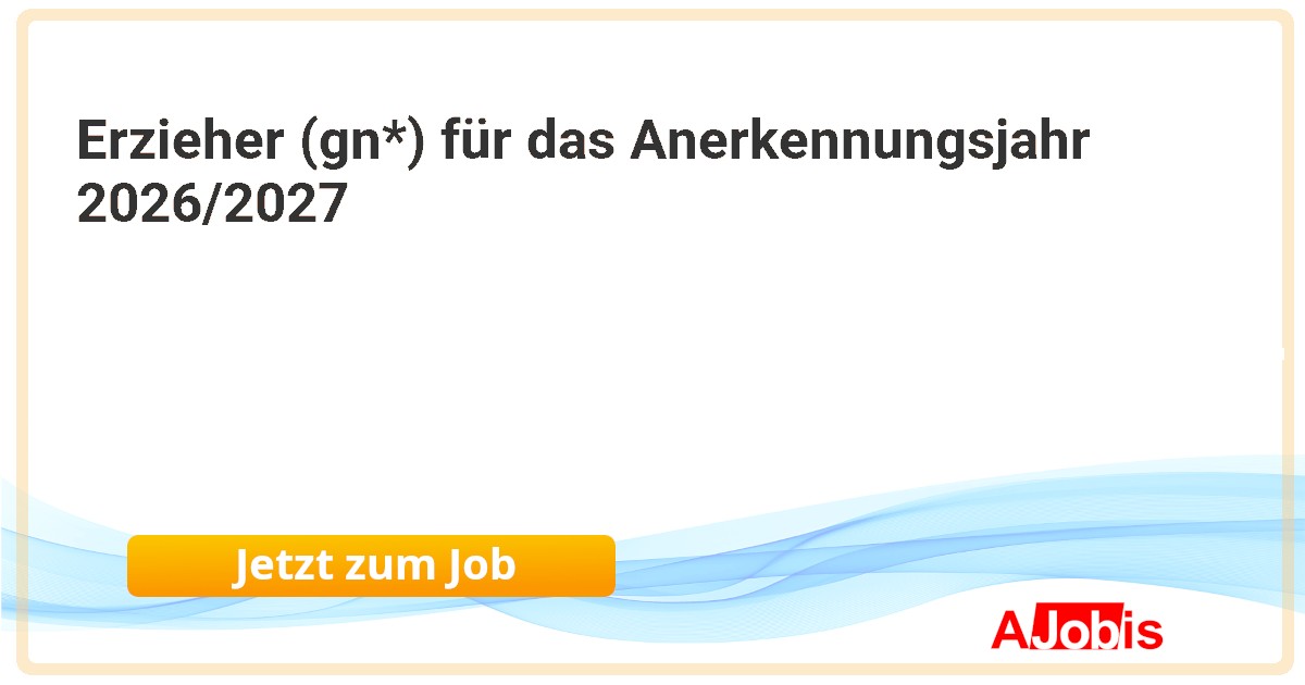 Große Kreisstadt Wangen im Allgäu - Wangen im Allgäu [08.11.2025] -- Anerkennungspraktikum Erzieher/in (w/m/d) 2026 Als Erzieher/-in betreust und unterstützt Du Kinder und Jugendliche, beobachtest und dokumentierst deren Bildungs- und Entwicklungswege oder führst individuelle Fördermaßnahmen einzelner Kinder oder Gruppen durch. Darüber... |