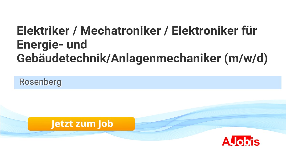 Elektriker / Mechatroniker / Elektroniker für Energie- und Gebäudetechnik/Anlagenmechaniker (m/w/d)* J. Rettenmaier & Söhne GmbH + Co KG - Rosenberg[24.11.2025] -- Elektriker / Elektroniker / Mechatroniker / Elektroniker für Energie- und Gebäudetechnik / Anlagenmechaniker (m/w/d) Rosenberg | DE | Technik | Festanstellung | Vollzeit JRS ist Knowhow- und Weltmarktführer für nachhaltige und funktionale Pflanzenfaser-Technologie. Als... |