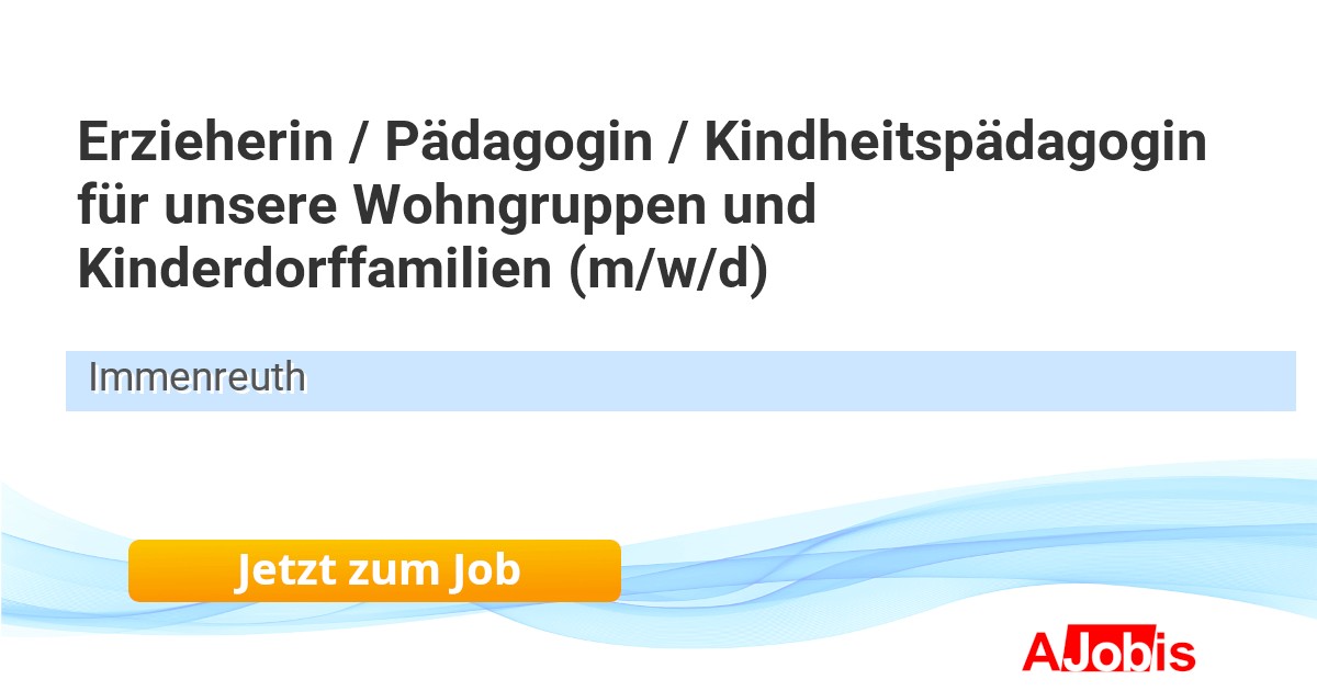 SOS-Kinderdorf e.V. - Immenreuth [07.11.2025] --Der SOS-Kinderdorf e.V. ist eine renommierte Hilfsorganisation und ein freier, gemeinnütziger Träger der Kinder- und Jugendhilfe mit 38 Einrichtungen im gesamten Bundesgebiet und rund 5.200 Mitarbeiterinnen und Mitarbeitern. Im SOS-Kinderdorf Oberpfalz bieten wir für die... |