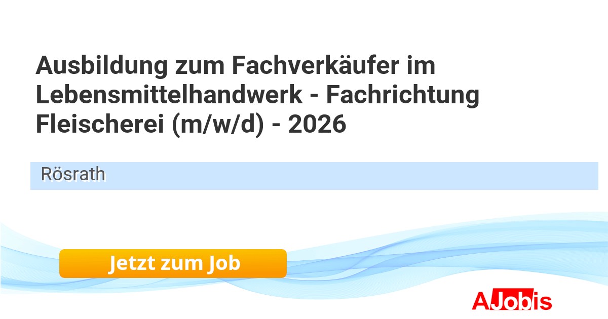 Breidohr's Fleisch- und Wurstmanufaktur GmbH - Rösrath [06.11.2025] --Unser Herz schlägt für Lebensmittel. Ihrs auch? In unseren, in der Regel, familiär geführten Märkten legen wir nicht nur großen Wert auf Qualität, Frische und regionale Produkte, sondern auch auf herausragenden Kundenservice und individuelle Kundenberatung. Wir suchen... |