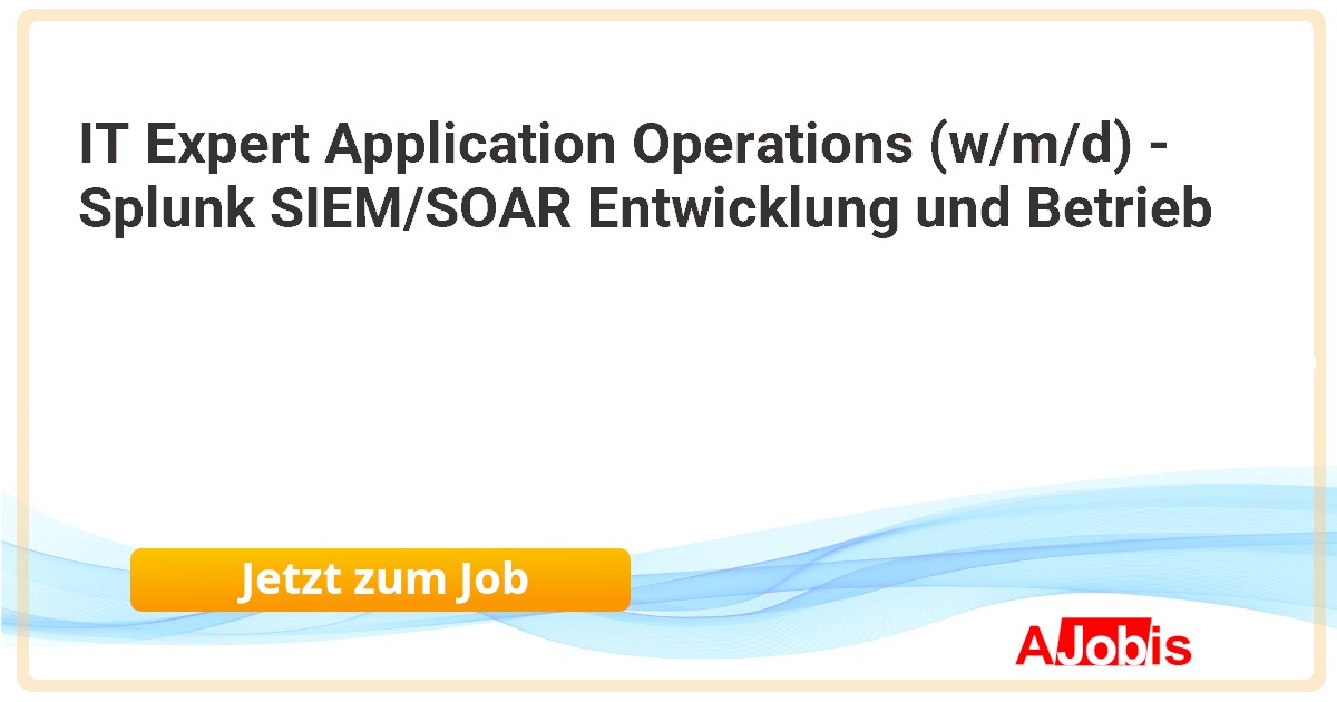 IT Expert Application Operations (w/m/d) - Splunk SIEM/SOAR Entwicklung und Betrieb*