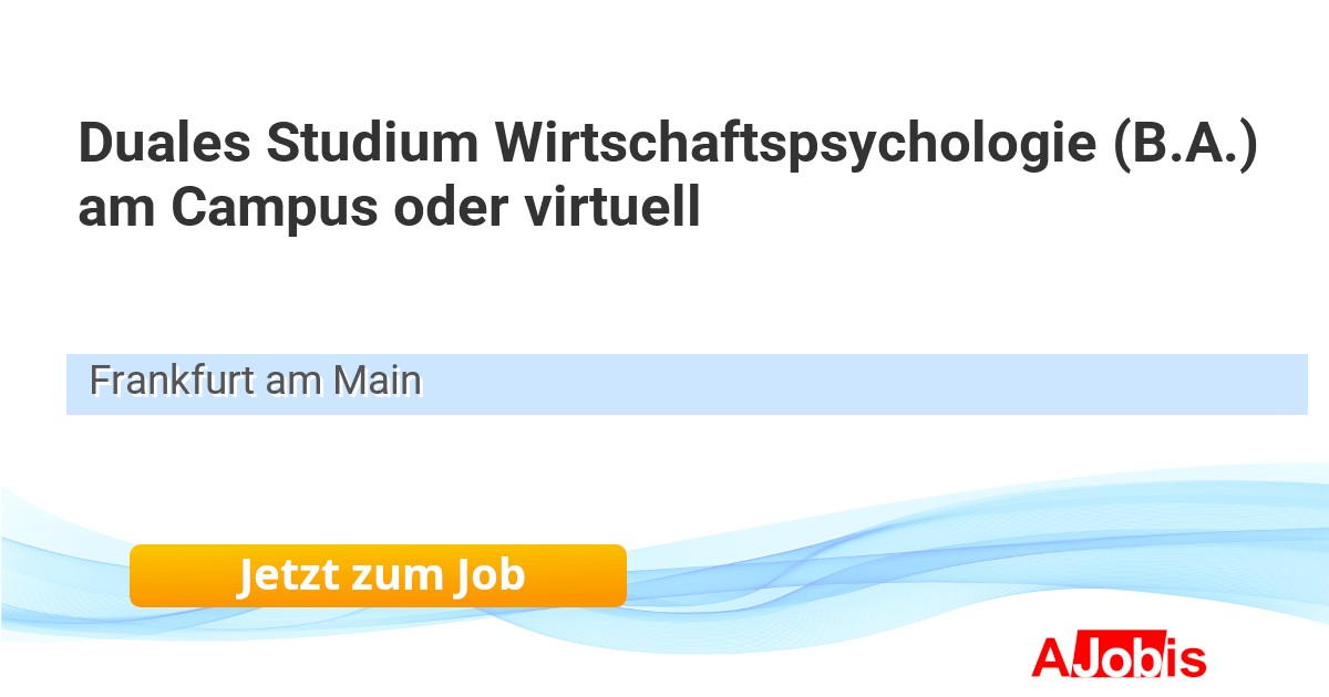 IU Internationale Hochschule - Frankfurt am Main [26.11.2025] -- Du bist fasziniert von der Verbindung von Psychologie und Wirtschaft? Du möchtest das menschliche Verhalten im beruflichen Umfeld genauer erforschen? Dann ist das Duale Studium Wirtschaftspsychologie genau das Richtige für Dich! Du kannst je nach Standort im Januar... |