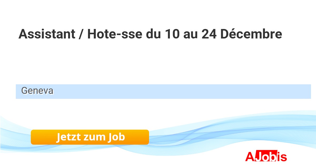 Page Group Switzerland - Geneva [24.11.2025] --Nous recherchons une ou un Assistante / Hôtesse pour s'occuper de l'accueil d'une boutique de luxe pendant les fêtes du 10 au 24 décembre prochain. Il est nécessaire de parler courramment anglais et français.Assistante / Hotesse du 10 au 24 DécembreNotre client est une... |
