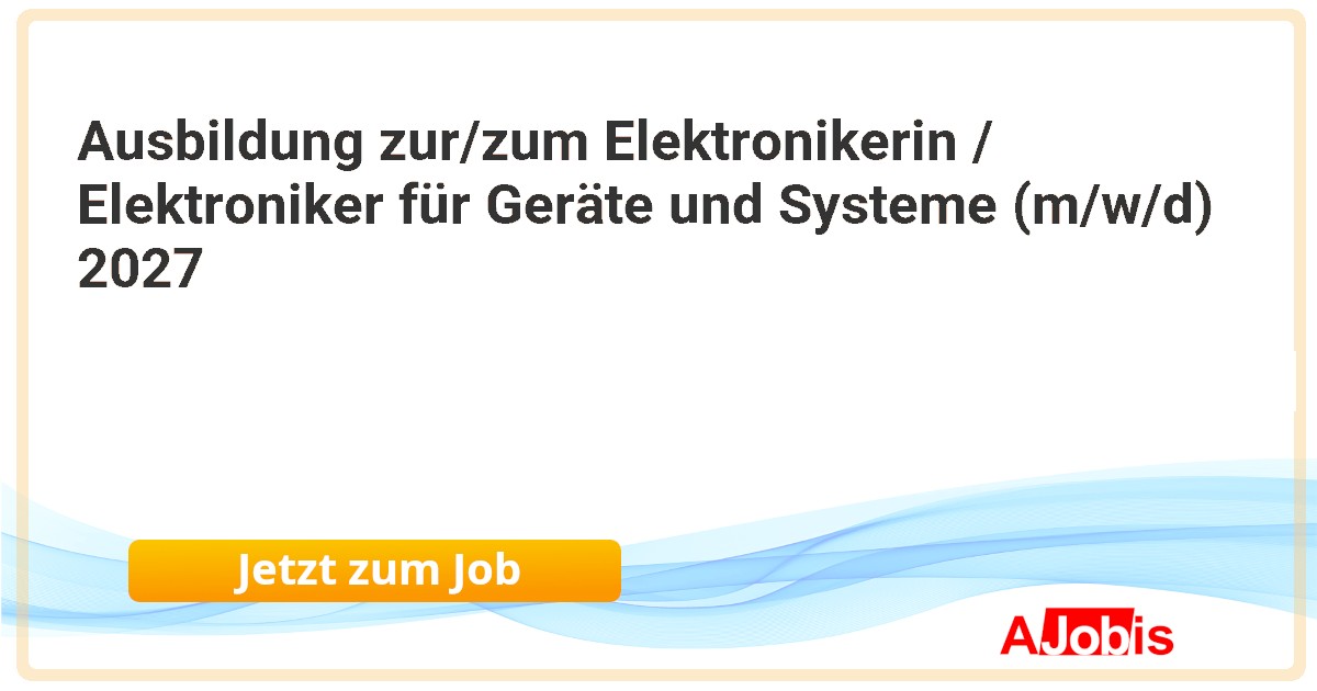 Hamburger Hochbahn AG - Hamburg [12.11.2025] --In unseren Bussen und Bahnen bringen wir jeden Tag über eine Million Menschen an ihr Ziel. Und wir bewegen noch mehr: für Hamburg, für die Zukunft und für alle, die bei uns arbeiten. Ausbildung Elektroniker für Geräte und Systeme (w/m/d) – Start 2026 Du – deine Rolle... |